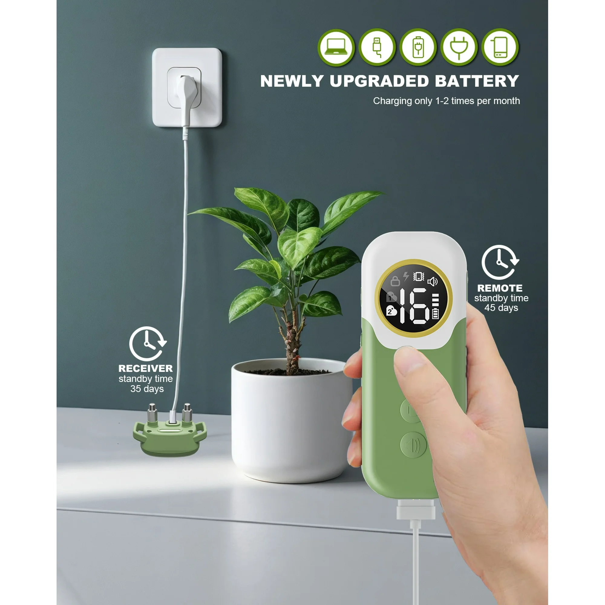 - 【Rechargeable Fast Charging & Long-lasting Battery Life】 Novel Magnetic Charging, 2-hour fully fast charging. The dog receiver can last up to 35 days of standby time and the remote can last up to 45 days of standby time.【Note】Do not use an adapter with a power greater than 5V1A for charging.